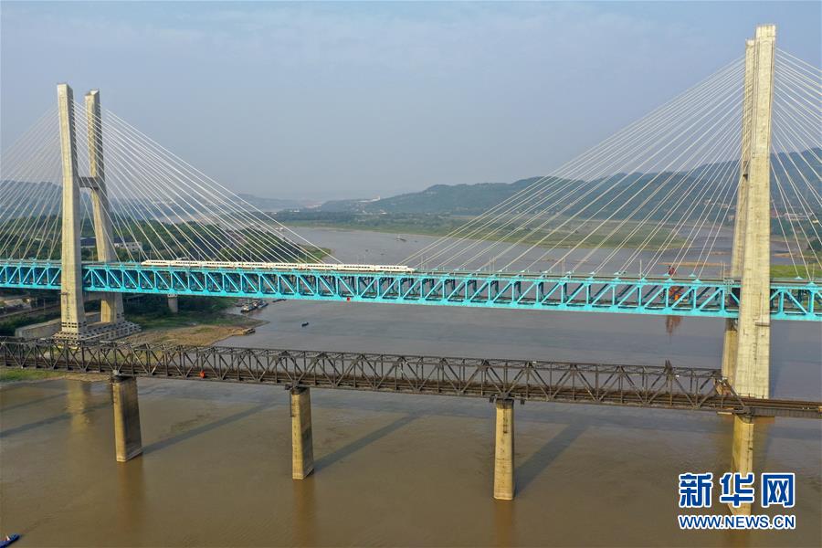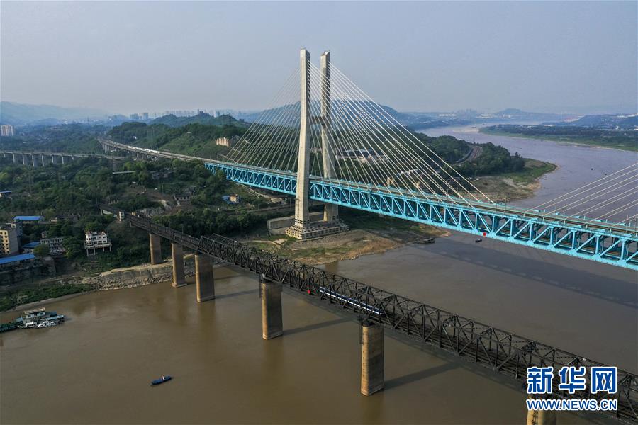 新白沙沱長(zhǎng)江特大橋在老橋下游100米左右位置跨越長(zhǎng)江,全長(zhǎng)約5.3公里,為上下兩層六線鐵路橋,上層為四線鐵路客運(yùn)專線,2018年1月25日隨著渝貴鐵路通車正式投入運(yùn)營(yíng)。該橋是渝貴鐵路全線規(guī)模最大、技術(shù)最為復(fù)雜的控制性工程,是世界上首座六線鐵路鋼桁梁斜拉橋,也是世界上每延米載荷量最大的橋梁,同時(shí)也是世界上首座雙層鐵路鋼桁梁斜拉橋。