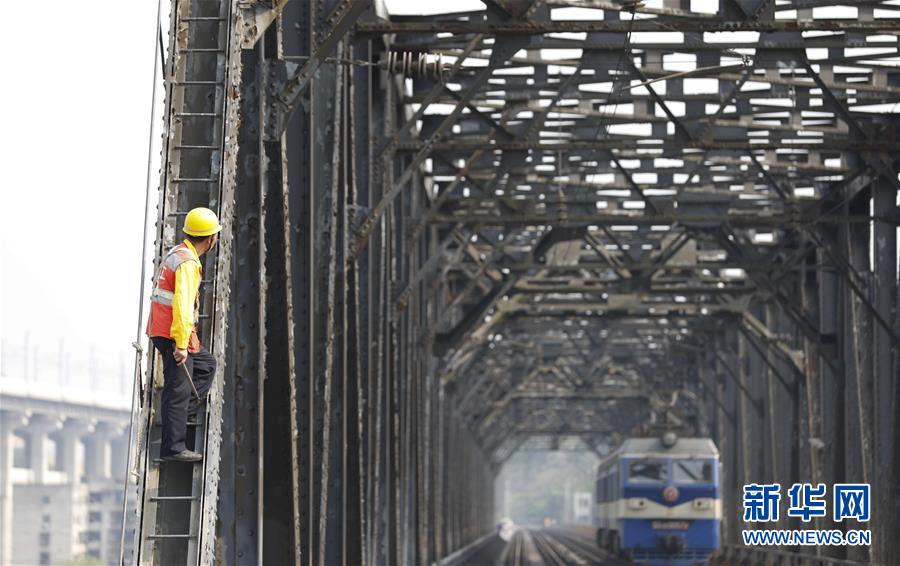 中國(guó)鐵路成都局有限公司重慶工務(wù)段53歲的橋隧工唐金華在白沙沱長(zhǎng)江大橋的鋼架上檢查鋼梁的銹蝕情況(4月23日攝)。 4月23日下午5點(diǎn)40分,隨著重慶白沙沱長(zhǎng)江大橋通行的最后一列客運(yùn)列車順利通過,這座“服役”了59年的重慶首座長(zhǎng)江大橋進(jìn)入“退役”倒計(jì)時(shí)。4月24日后,所有列車將改線經(jīng)距白沙沱長(zhǎng)江大橋約100米的新白沙沱長(zhǎng)江特大橋通行,新橋“接力”老橋,運(yùn)輸能力將得到大幅提升。 白沙沱長(zhǎng)江大橋于1958年開工,1960年通過首趟列車,是繼武漢長(zhǎng)江大橋之后的第二座長(zhǎng)江大橋。 新華社記者 劉潺 攝