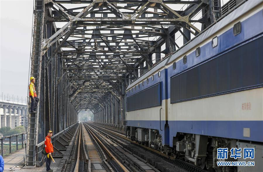 中國(guó)鐵路成都局有限公司重慶工務(wù)段的巡檢班組在白沙沱長(zhǎng)江大橋上進(jìn)行巡檢作業(yè)(4月23日攝)。 4月23日下午5點(diǎn)40分,隨著重慶白沙沱長(zhǎng)江大橋通行的最后一列客運(yùn)列車順利通過,這座“服役”了59年的重慶首座長(zhǎng)江大橋進(jìn)入“退役”倒計(jì)時(shí)。4月24日后,所有列車將改線經(jīng)距白沙沱長(zhǎng)江大橋約100米的新白沙沱長(zhǎng)江特大橋通行,新橋“接力”老橋,運(yùn)輸能力將得到大幅提升。 白沙沱長(zhǎng)江大橋于1958年開工,1960年通過首趟列車,是繼武漢長(zhǎng)江大橋之后的第二座長(zhǎng)江大橋。 新華社記者 劉潺 攝