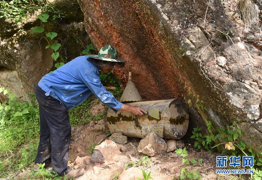 5月10日,在甘肅省隴南市徽縣大河店鎮(zhèn)硬灣村,蜂農(nóng)李成在收蜂后對(duì)蜂箱進(jìn)行密封。 甘肅省隴南市徽縣大河店鎮(zhèn)硬灣村位于秦巴山區(qū)深處,2017年,在當(dāng)?shù)卣姆龀窒?,龍崖老巢蜜養(yǎng)殖農(nóng)民專業(yè)合作社成立,蜂農(nóng)們將傳統(tǒng)養(yǎng)蜂技藝和現(xiàn)代加工方式相結(jié)合,并通過電商等渠道打開銷路,有效帶動(dòng)了當(dāng)?shù)刎毨Т迕衩撠氈赂弧D壳罢麄€(gè)合作社共有蜂箱2000余個(gè),每箱每年可帶來三四千元的收入。 新華社記者 馬寧 攝