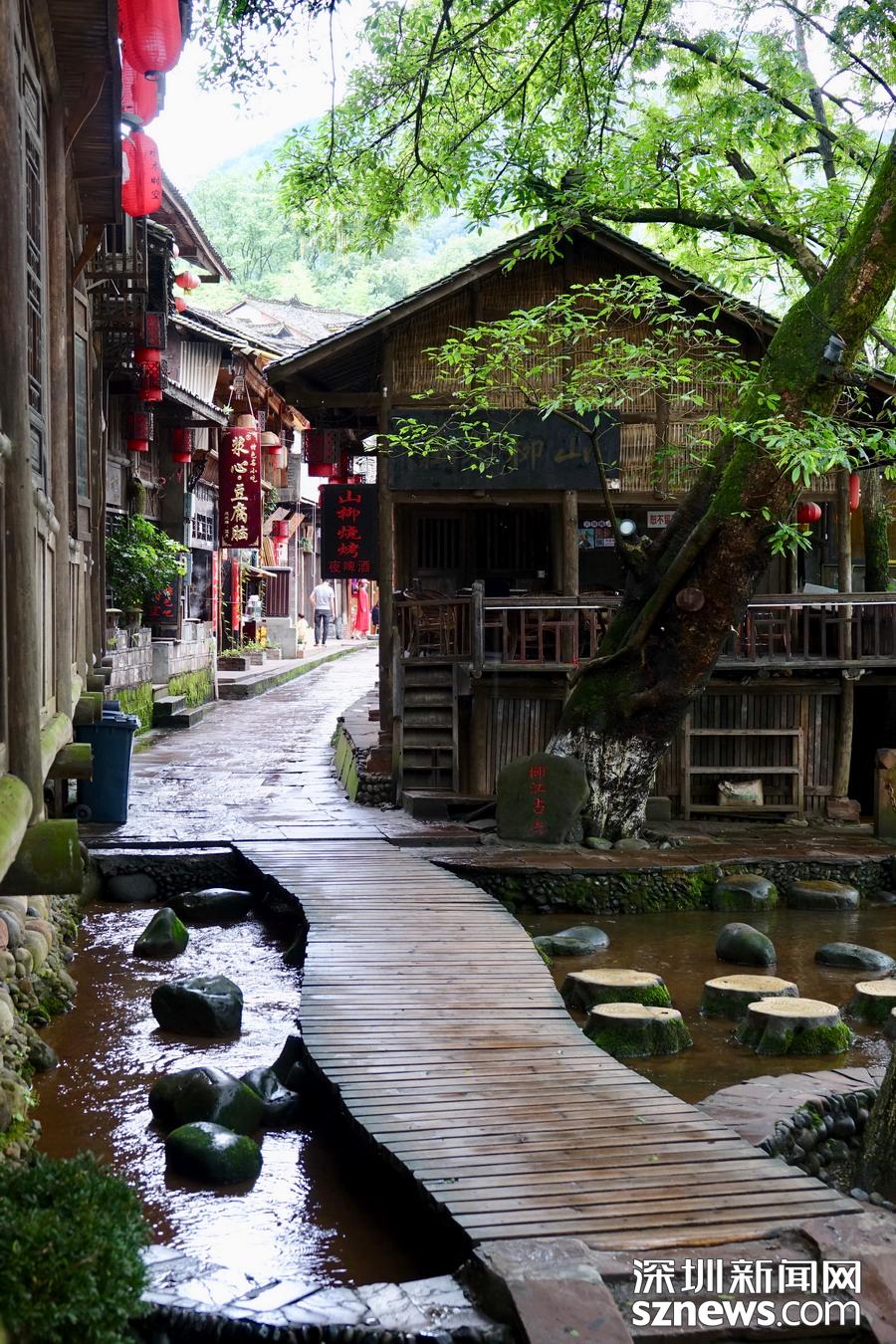 古鎮(zhèn)背靠峨眉、瓦屋仙山,楊村河、花溪河擁鎮(zhèn)而過(guò)。這里有川西風(fēng)情吊腳樓、訪(fǎng)古尋悠水碼頭、親水臨河古棧道、百年民居匯老街等特色景觀。李 仁奇 攝