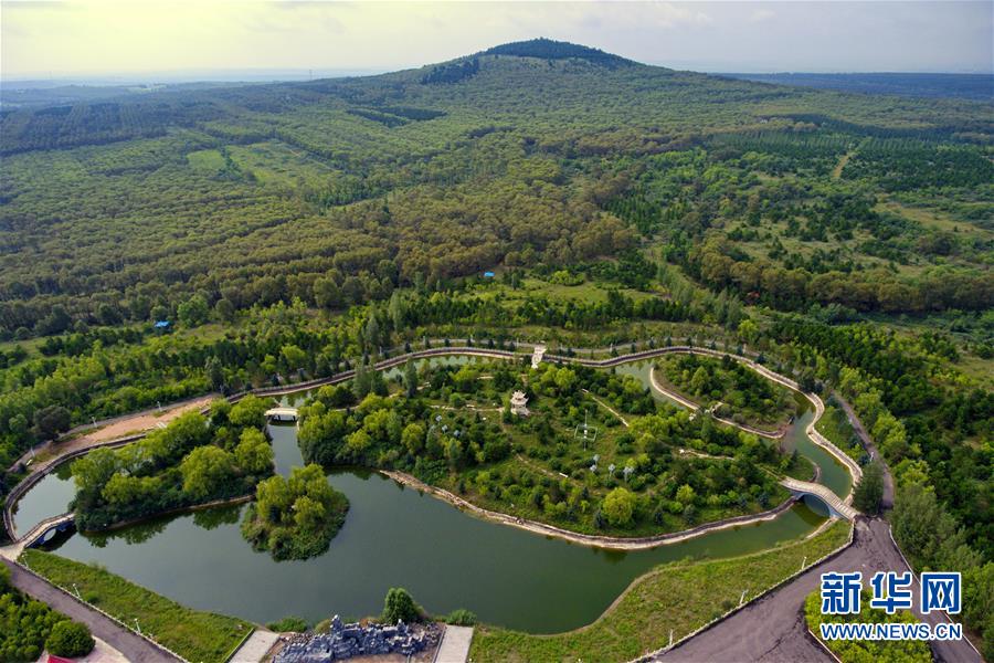 這是2018年8月7日無人機拍攝的山西省右玉縣小南山森林公園。新華社記者 曹陽 攝