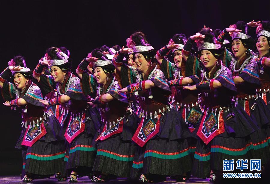 5月16日,在第十八屆群星獎決賽舞蹈類作品比賽中,演員在表演《苗家阿婆笑哈哈》。 當日,作為第十二屆中國藝術(shù)節(jié)的重要內(nèi)容,第十八屆群星獎決賽在上海東方藝術(shù)中心啟動。84個入圍決賽作品將按照舞蹈、音樂、戲劇、曲藝4個門類進行7場比賽,最終評出20個獲獎作品。 新華社記者 任瓏 攝