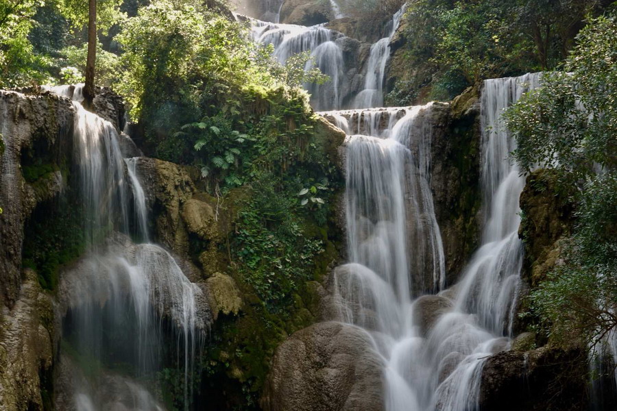 光西瀑布是一個瀑布群,位于瑯勃拉邦以南30多公里的原始森林中,其中一處高40多米,雖然水量不大,但有一種天然的涓細(xì)之美,不同凡響。李仁奇  攝