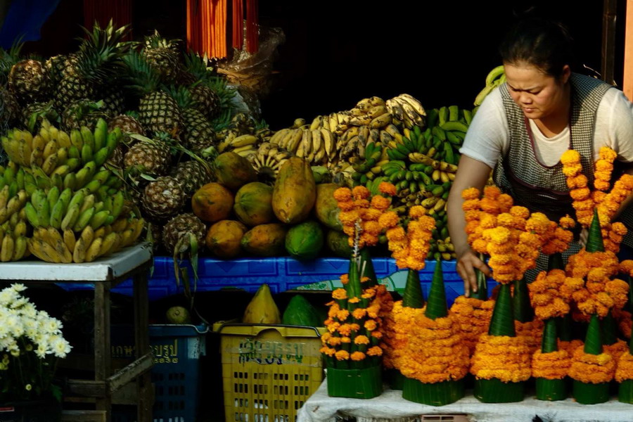 隨著旅游業(yè)的發(fā)展,現(xiàn)在游客們也都參與到布施活動中。僧侶們一直保持著依靠清晨化緣得來的食物充饑的習(xí)俗,多余的食物會用于慈善活動。李仁奇  攝