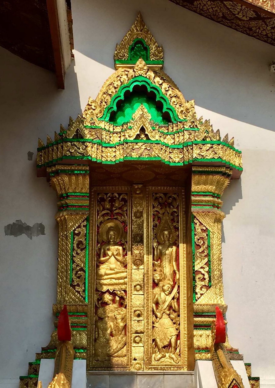 大殿后墻上用琉璃鑲嵌的生命之樹圖案和幾個佛教故事十分精美。