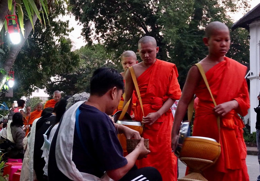 隨著旅游業(yè)的發(fā)展,現(xiàn)在游客們也都參與到布施活動中。僧侶們一直保持著依靠清晨化緣得來的食物充饑的習俗,多余的食物會用于慈善活動。