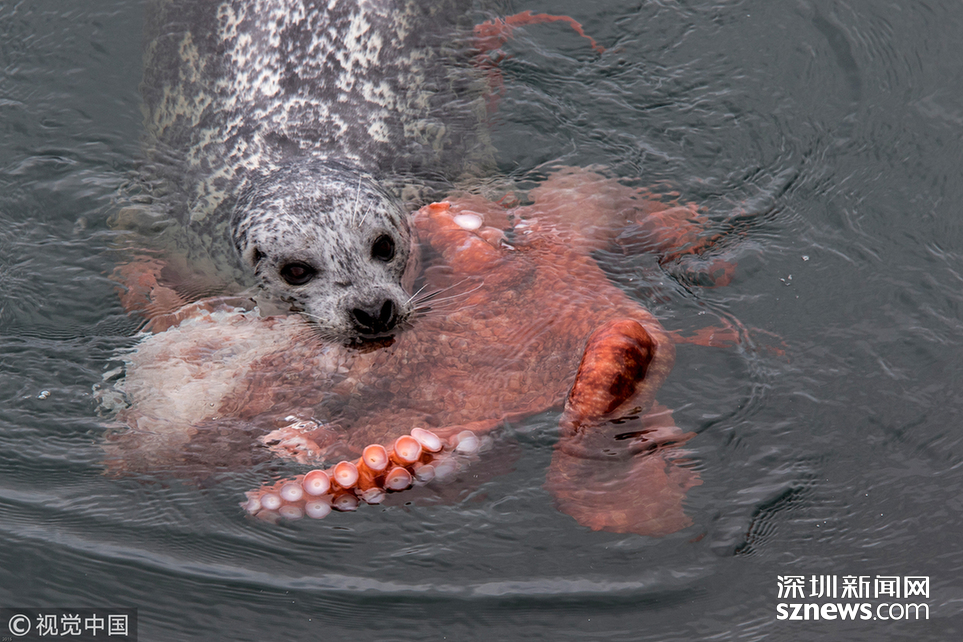 當(dāng)?shù)貢r(shí)間2015年2月12日,加拿大奧格登角,一只海豹與一只巨大的章魚(yú)死戰(zhàn)。這場(chǎng)惡戰(zhàn)最終以海豹的勝利而告終。商人Bob Ianson日前在與家人旅行時(shí),意外拍到巨型章魚(yú)與海豹搏斗的全過(guò)程。