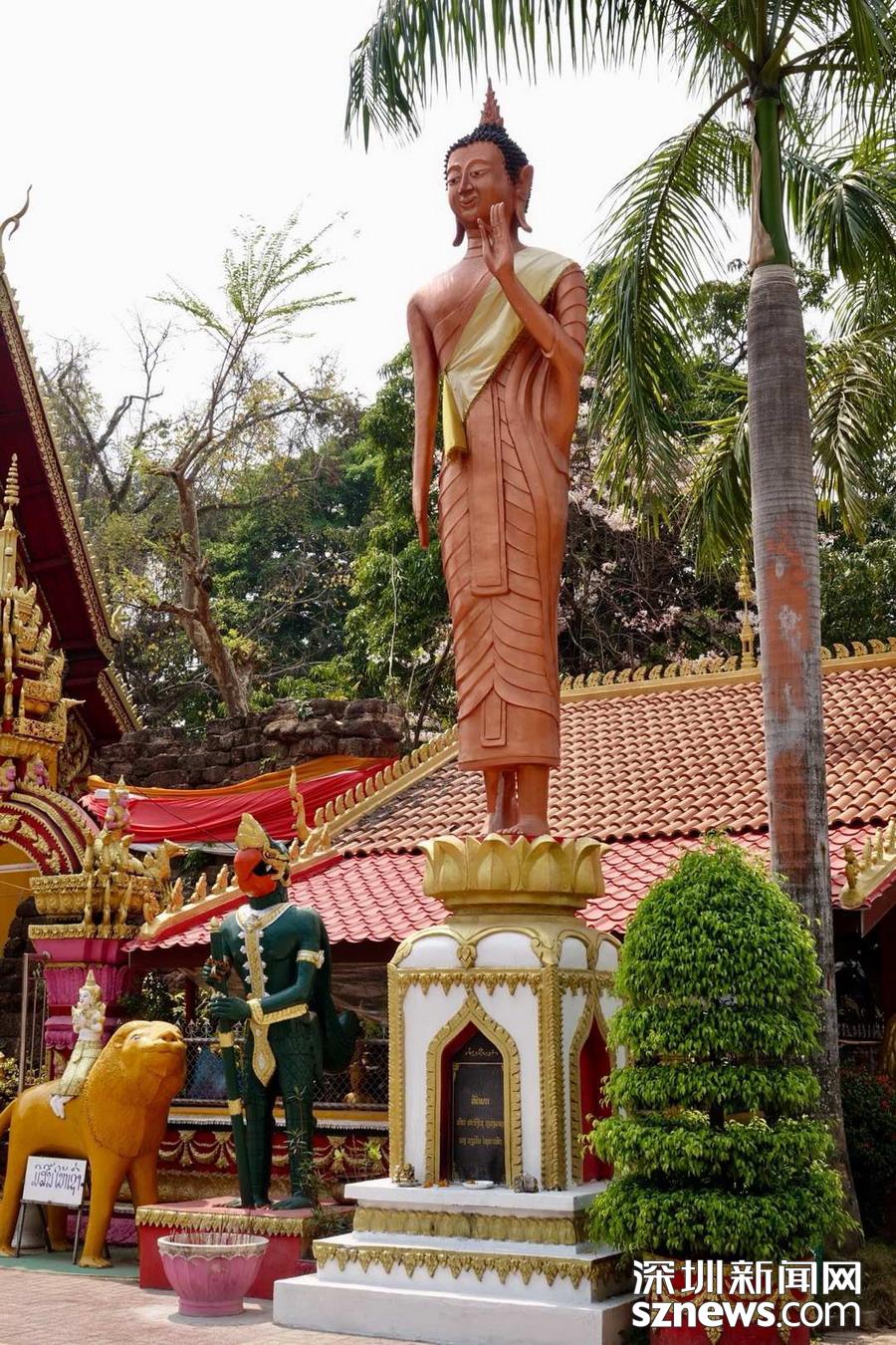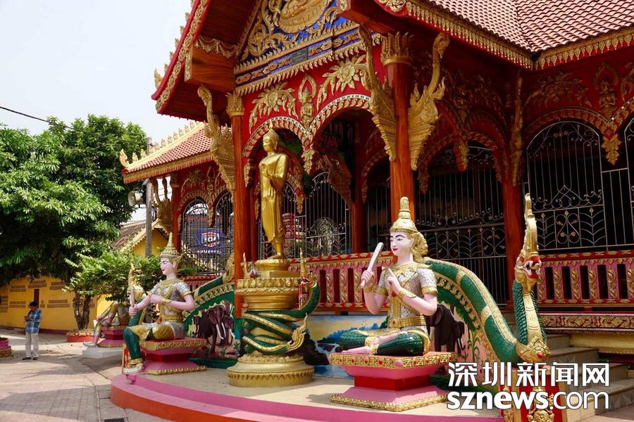 西蒙寺是萬(wàn)象香火最旺盛的一個(gè)寺廟,又稱神城寺,每天有很多當(dāng)?shù)厝思坝慰蛠?lái)這里祈福,尤其受泰國(guó)游客鐘愛(ài)。李仁奇  攝