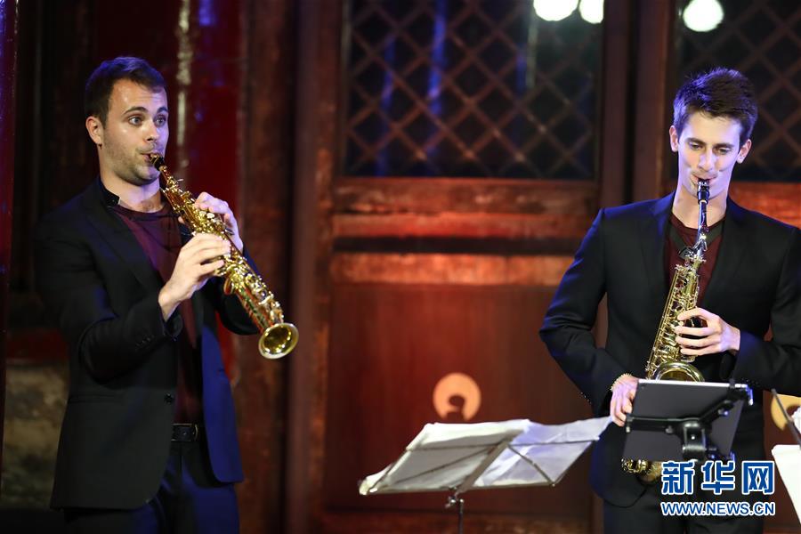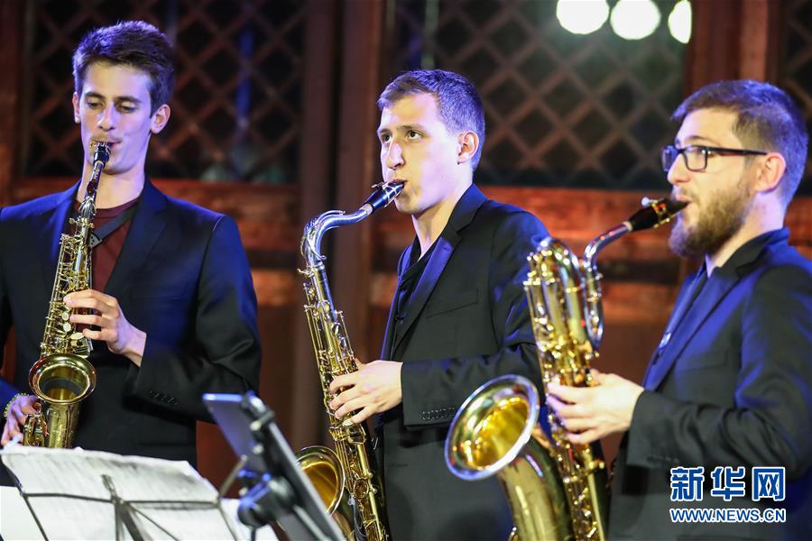 5月26日,凱比亞特樂隊成員在音樂會上表演。 當日,作為第十九屆“相約北京”藝術節(jié)系列演出之一,西班牙凱比亞特樂隊薩克斯四重奏音樂會在北京Temple東景緣上演。 新華社記者 張玉薇 攝