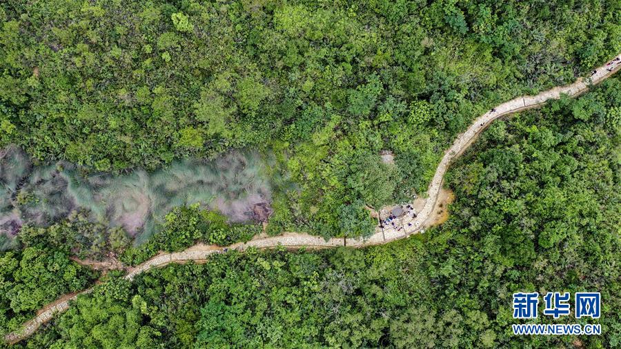 6月1日拍攝的蜿蜒于鳳凰山間的香山古驛道(無人機拍攝)。