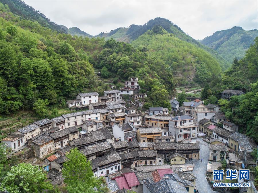 掩映在大山之中的石板房古村落,人去房空(8月7日無人機拍攝)。 新華社記者陶明攝