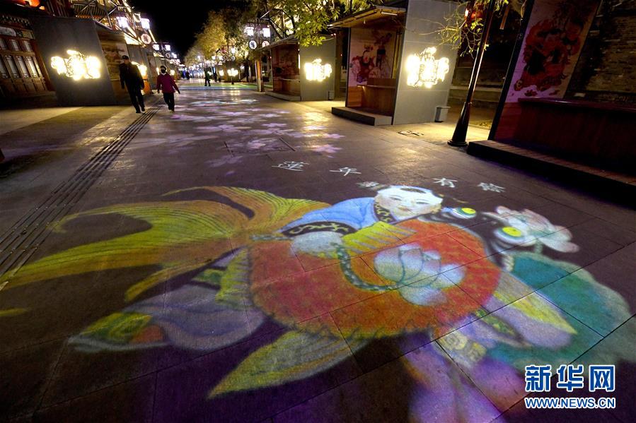 楊柳青年畫主題燈光布滿在天津楊柳青古鎮(zhèn)步行街上(12月4日攝)。 運河穿城過,古鎮(zhèn)草色新,千年畫鄉(xiāng)楊柳青自傳統(tǒng)中浸潤出與眾不同的顏色。40年斗轉(zhuǎn)星移,這個沉淀千年的小鎮(zhèn),用別樣的風姿講述了一個歷史與現(xiàn)在碰撞而出的改革“新”故事。 新華社記者岳月偉攝