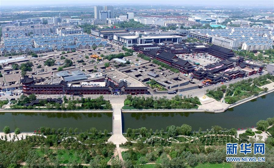 南運河北側(cè)的石家大院遺址、仿古建筑群與運河形成天津楊柳青古鎮(zhèn)運河景觀(2017年7月13日無人機拍攝)。 運河穿城過,古鎮(zhèn)草色新,千年畫鄉(xiāng)楊柳青自傳統(tǒng)中浸潤出與眾不同的顏色。40年斗轉(zhuǎn)星移,這個沉淀千年的小鎮(zhèn),用別樣的風姿講述了一個歷史與現(xiàn)在碰撞而出的改革“新”故事。 新華社記者岳月偉攝