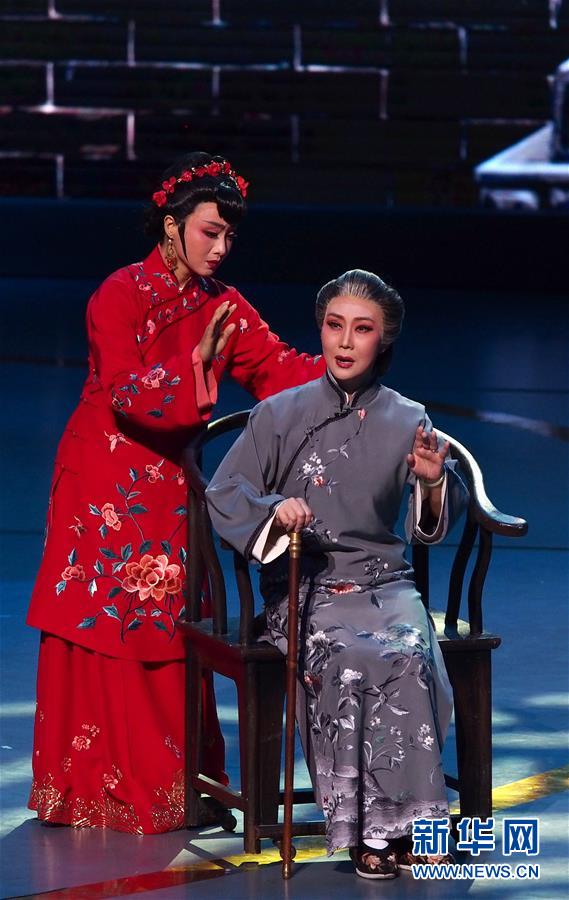 6月2日,蘇州市蘇劇傳習保護中心演員在第十二屆中國藝術節(jié)閉幕式上匯報演出獲得文華大獎的蘇劇《國鼎魂》選段。 新華社記者 任瓏 攝