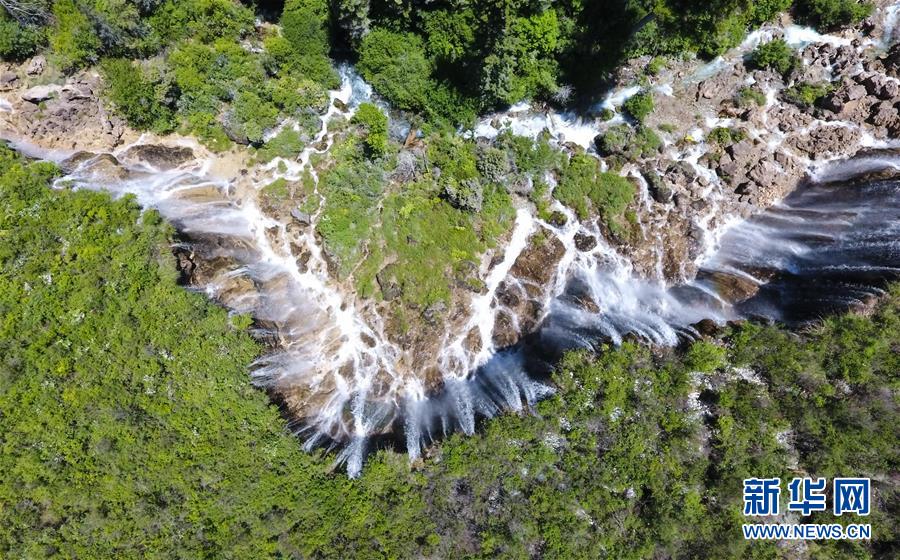 這是九寨溝景區(qū)的諾日朗瀑布景點(6月5日無人機拍攝)。 新華社記者薛玉斌攝