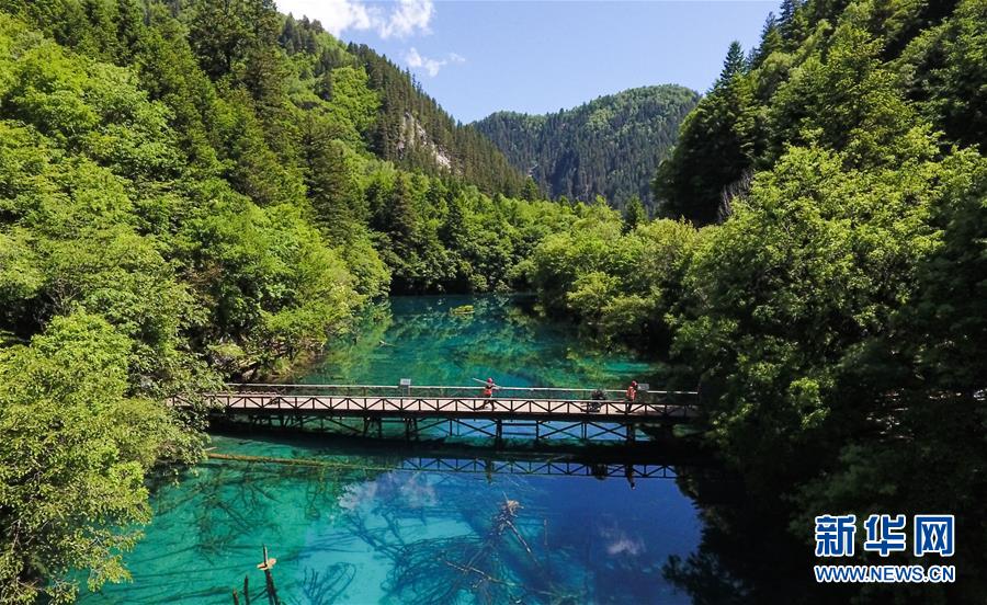這是九寨溝景區(qū)的鏡海景點(6月5日無人機拍攝)。新華社記者薛玉斌攝