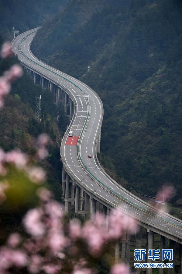 貴州思劍高速公路劍河縣岑松鎮(zhèn)段的春季景觀(3月23日攝)。陽春時節(jié),貴州思(南)劍(河)高速公路劍河縣岑松附近的桃花和梨花陸續(xù)開放。 新華社記者楊文斌攝