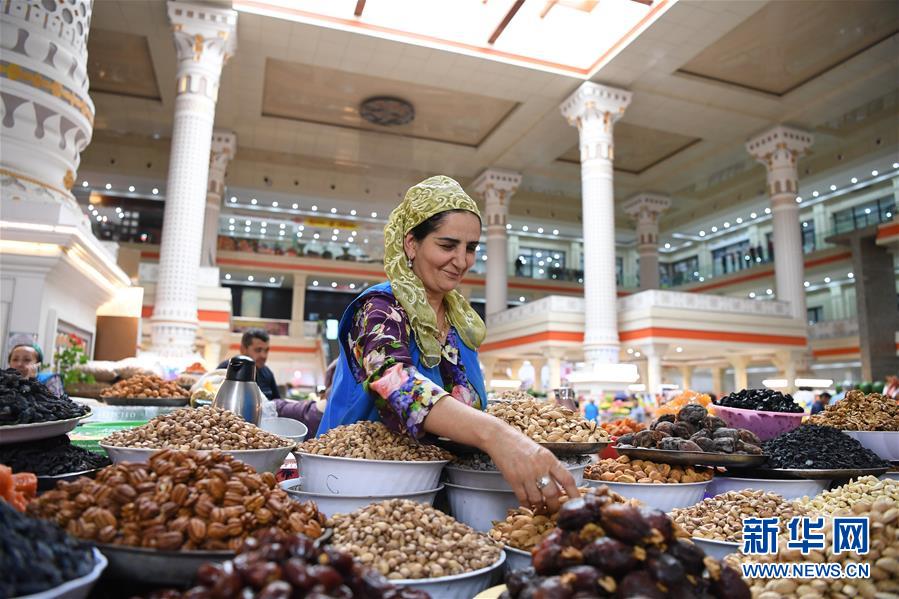 6月10日,在塔吉克斯坦首都杜尚別,一名商販?zhǔn)圪u(mài)干果。塔吉克斯坦共和國(guó),簡(jiǎn)稱(chēng)塔吉克斯坦,是位于中亞?wèn)|南部的內(nèi)陸國(guó)家。塔吉克斯坦是多民族國(guó)家,全國(guó)共有86個(gè)民族,人口約910萬(wàn)。新華社記者沙達(dá)提攝