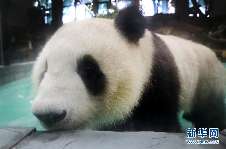 6月18日,大熊貓“和風”湊到展館玻璃幕墻邊向外張望。 當日,來自四川的大熊貓兄弟“和風”與“星光”飛抵上海,正式開始了在上海動物園為期三年的生活。為迎接這對“風光兄弟”,上海動物園將原有的大熊貓館擴建并裝修一新,空調、水池、游樂場以及竹葉儲存間等配置齊全。 新華社記者 方喆 攝