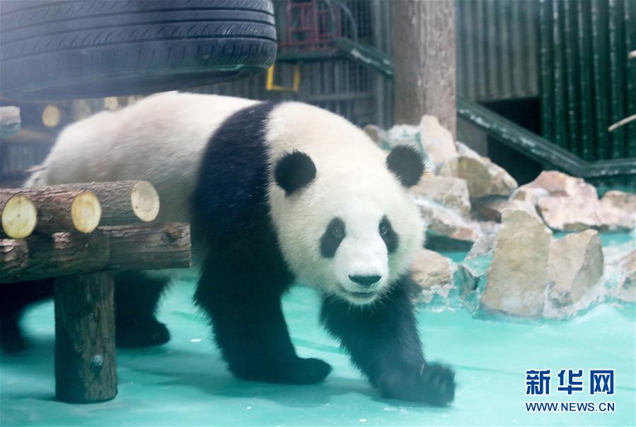 6月18日,大熊貓“星光”在裝修一新的大熊貓館內(nèi)散步。 當(dāng)日,來自四川的大熊貓兄弟“和風(fēng)”與“星光”飛抵上海,正式開始了在上海動(dòng)物園為期三年的生活。為迎接這對(duì)“風(fēng)光兄弟”,上海動(dòng)物園將原有的大熊貓館擴(kuò)建并裝修一新,空調(diào)、水池、游樂場以及竹葉儲(chǔ)存間等配置齊全。 新華社記者 方喆 攝