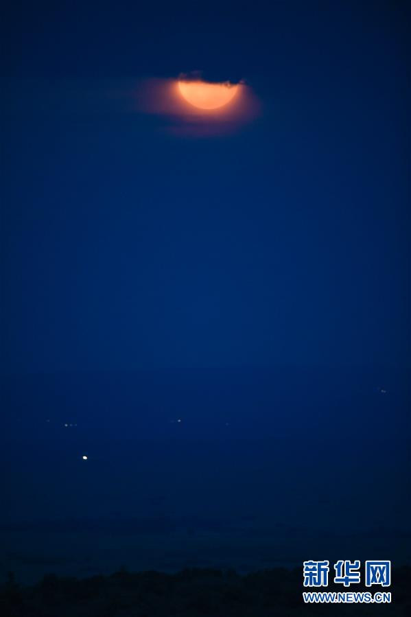 這是6月17日在肯尼亞馬賽馬拉國家保護區(qū)拍攝的被云層遮住的月亮。 新華社記者 李琰 攝