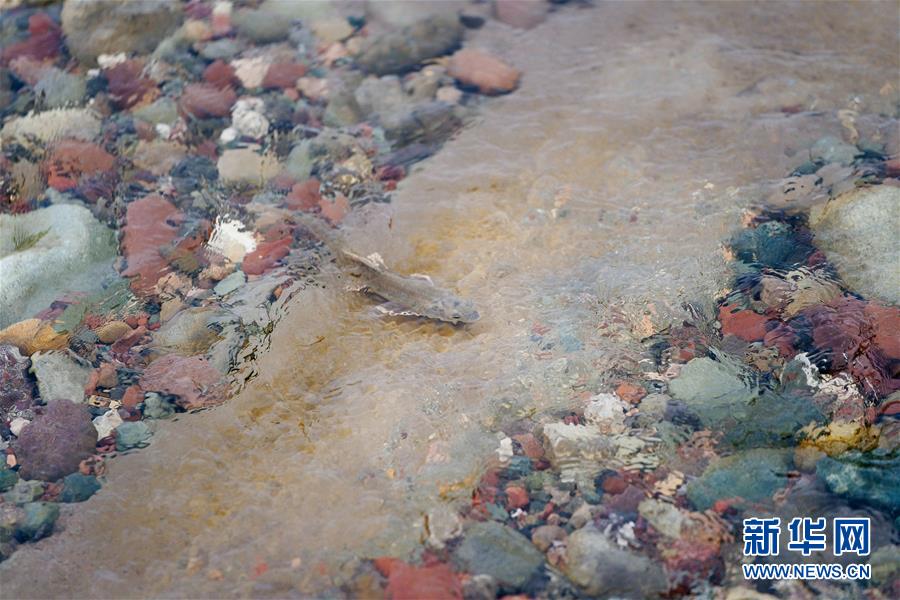 7月6日,在青海省剛察縣沙柳河里,一條湟魚在洄游。 新華社記者 張宏祥攝