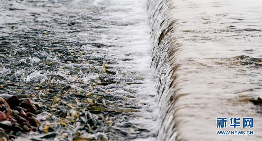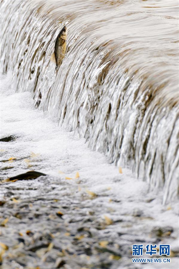 7月6日,在青海省剛察縣沙柳河里,湟魚在躍起向上洄游。 新華社記者 費(fèi)茂華攝