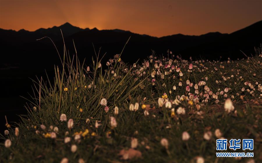 在年保玉則,野花上的冰雪漸漸消融(5月21日攝)。 新華社記者 張宏祥 攝