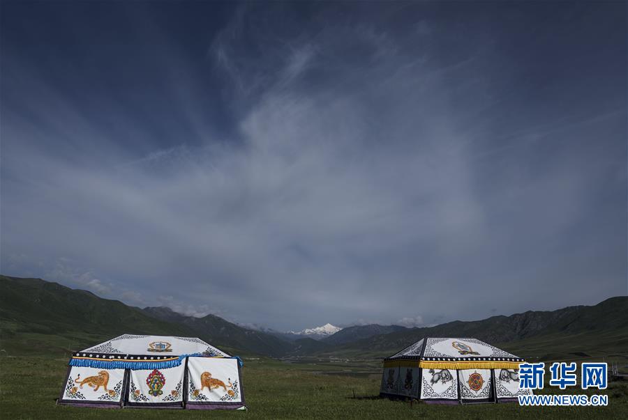 在阿尼瑪卿雪山附近一個(gè)農(nóng)家樂的院子里遙望阿尼瑪卿雪山(7月10日攝)。 新華社記者 費(fèi)茂華 攝