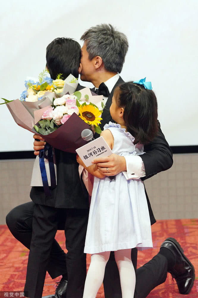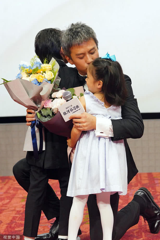 2019年7月11日,上海,鄧超新片《銀河補(bǔ)習(xí)班》上海首映,孫儷帶著等等、小花前來助陣,現(xiàn)場的鄧超一看就是個(gè)女兒奴,在現(xiàn)場和目光都不離開小花,又是親親抱抱,又是單膝跪地安撫,十足疼愛這位前世小情人。