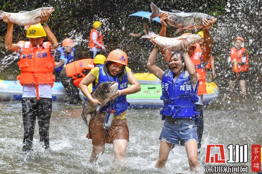 2019年8月2日,廣東清遠(yuǎn),臺(tái)風(fēng)“韋帕”不但帶來風(fēng)雨,還給游客帶來捕魚之樂。