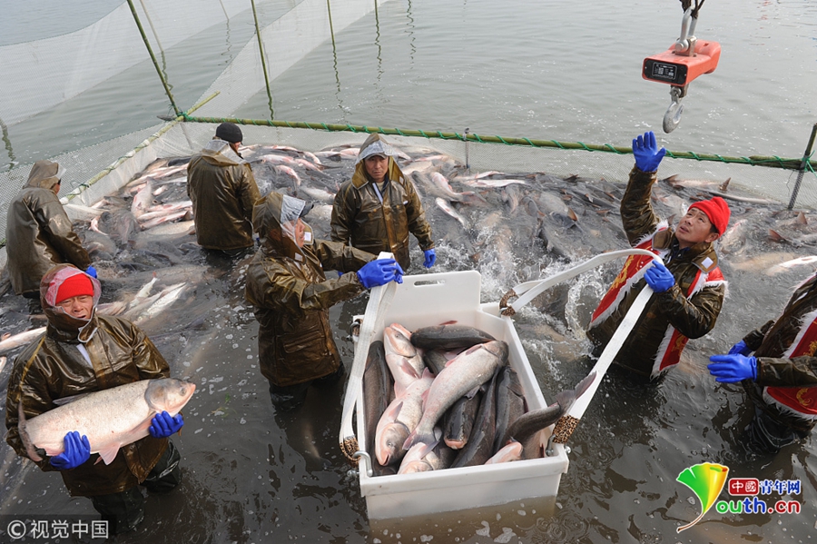 2018年12月26日,吉林松原,查干湖迎來(lái)了“紅網(wǎng)”,單網(wǎng)捕撈約30萬(wàn)斤。