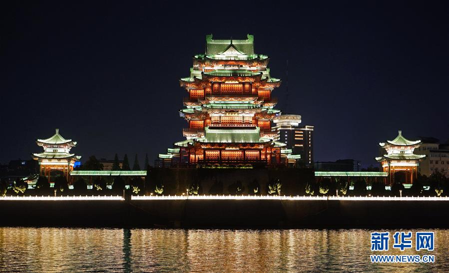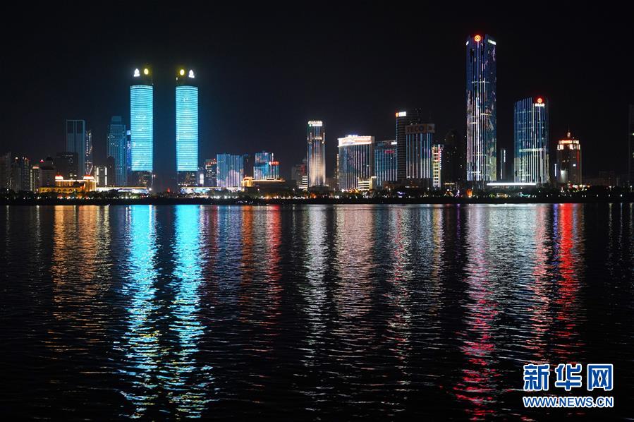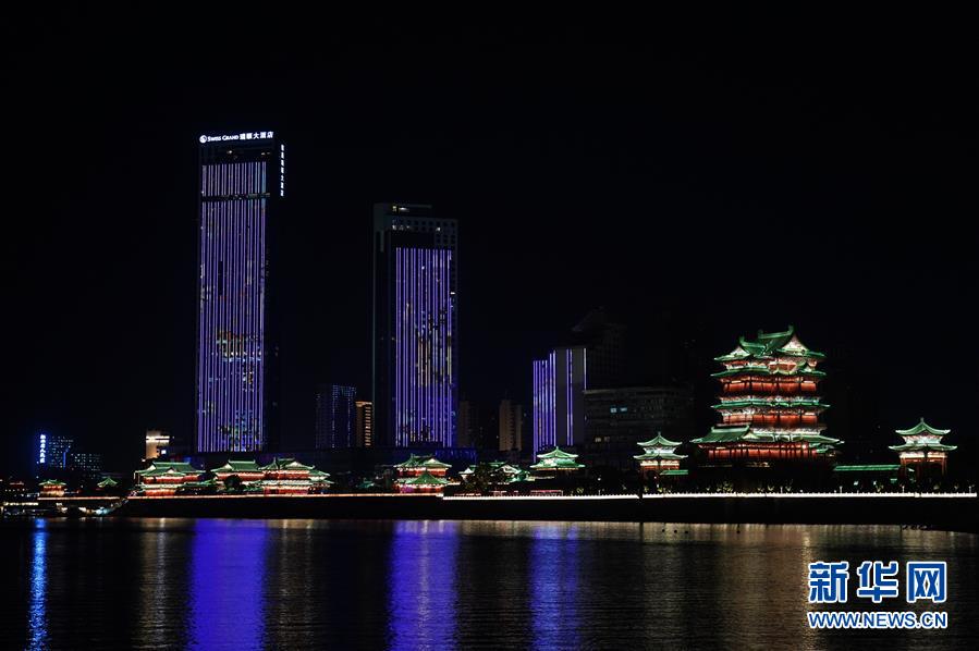 這是江西南昌贛江畔的燈光秀(8月6日攝)。 新華社記者萬象 攝