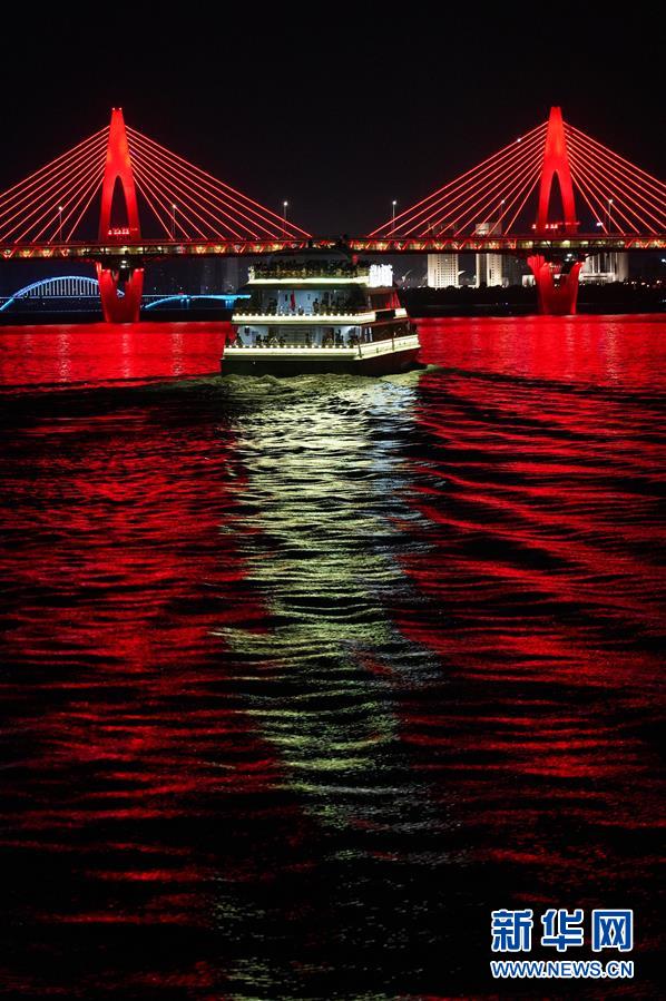 這是江西南昌贛江畔的燈光秀(8月6日攝)。 新華社記者周密 攝