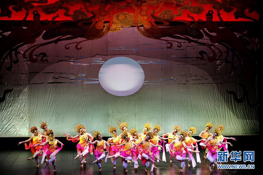 8月7日晚,舞蹈演員們在表演中。 當(dāng)日,“舞出中國風(fēng)”慶祝新中國成立70周年公益展演在上海國際舞蹈中心舉行。舞蹈家黃豆豆攜手30位青年舞者進(jìn)行志愿演出,并與多家藝術(shù)團(tuán)隊合作,共同呈現(xiàn)了一臺具有濃郁中國風(fēng)的原創(chuàng)舞專場,為新中國成立70周年獻(xiàn)禮。 新華社記者 劉穎 攝