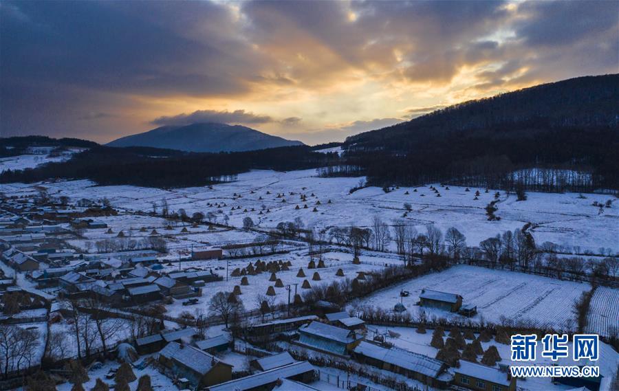 這是1月23日拍攝的二合雪鄉(xiāng)的日出(無人機(jī)拍攝)。新華社記者許暢攝