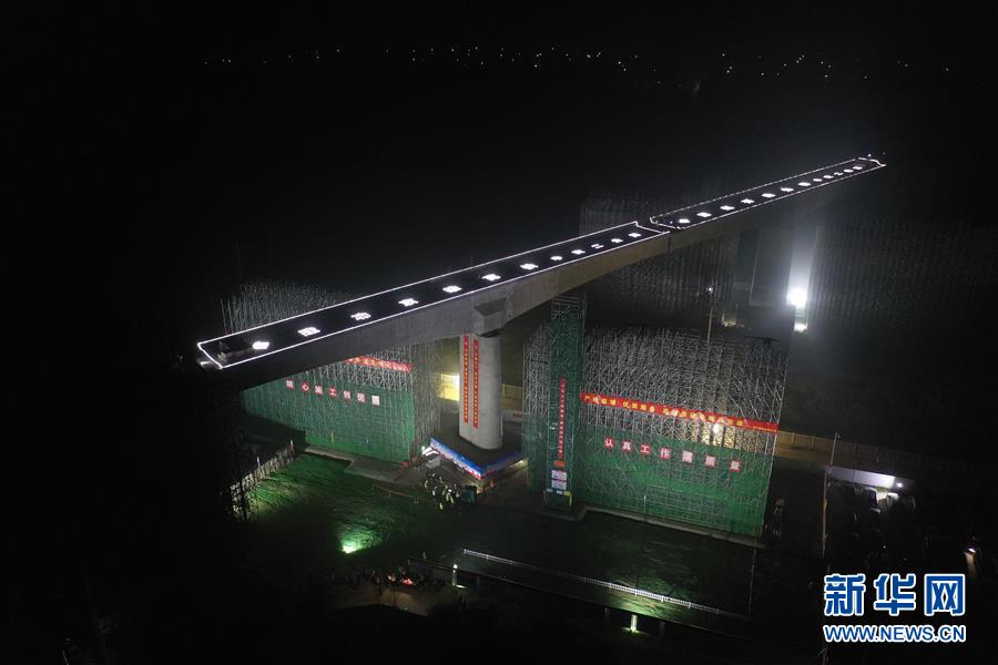 這是8月27日凌晨無人機拍攝的轉(zhuǎn)體完成的橋梁。 新華社記者 邢廣利 攝