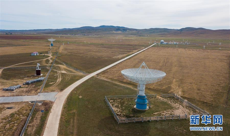 這是9月17日在國(guó)家天文臺(tái)明安圖觀測(cè)基地拍攝的射電頻譜日像儀天線(無(wú)人機(jī)拍攝)。 新華社記者 彭源 攝