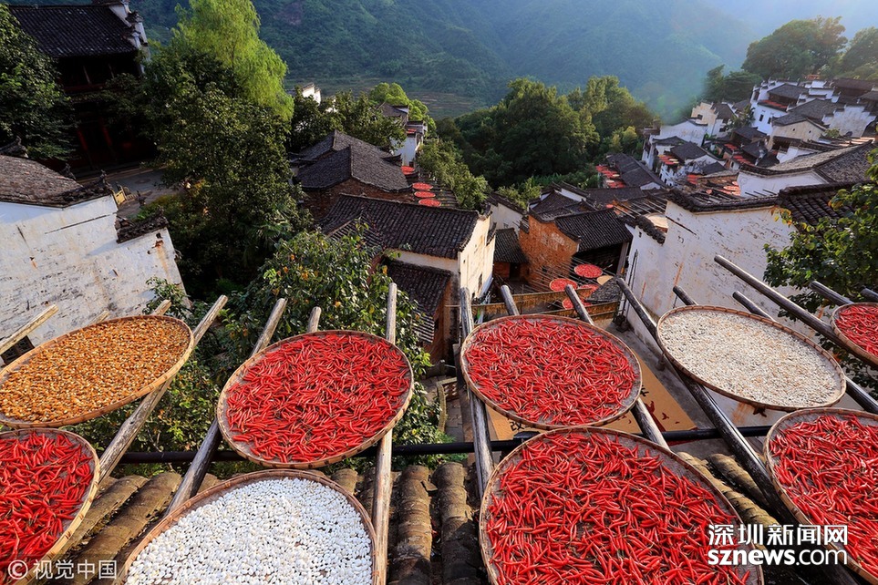 呈坎古村曬秋忙