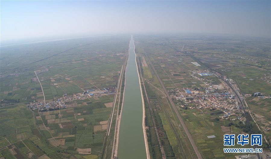 9月4日無(wú)人機(jī)拍攝的河套灌區(qū)總干渠上游渠道。 新華社記者 劉詩(shī)平 攝