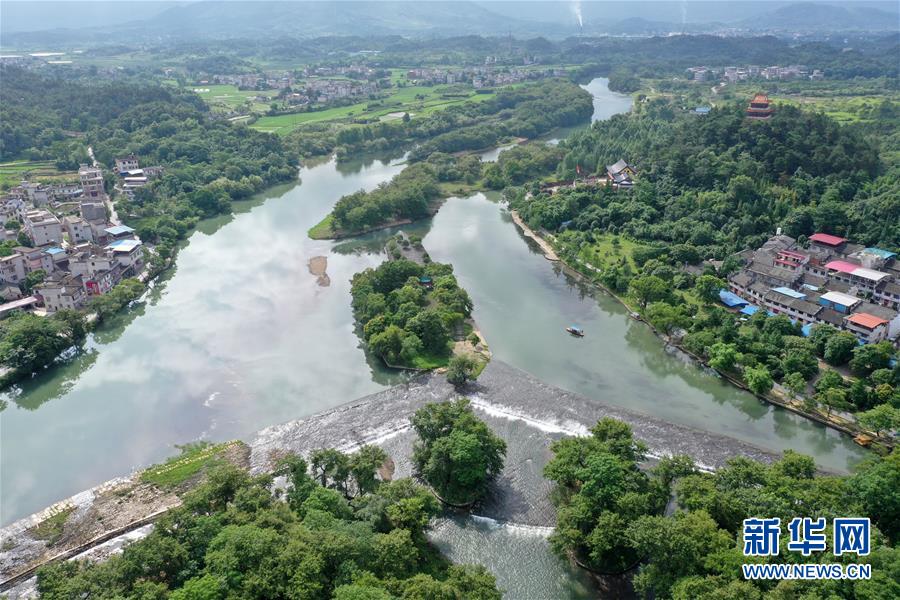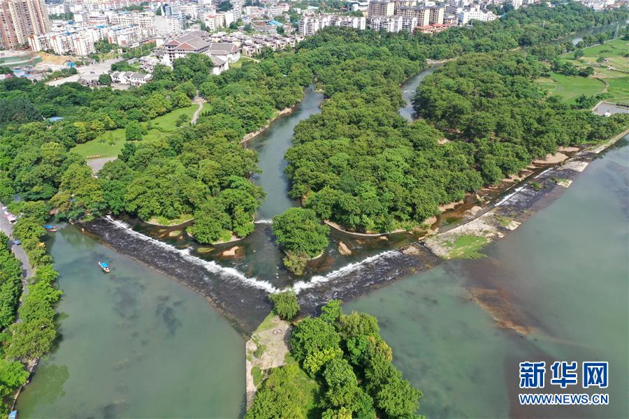 這是6月30日無(wú)人機(jī)拍攝的廣西興安縣靈渠。 位于廣西興安縣的靈渠是世界上保存最完整的古代水利工程之一,至今仍發(fā)揮著農(nóng)田灌溉、排洪泄洪作用。2018年,靈渠入選世界灌溉工程遺產(chǎn)名錄。 新華社記者 陸波岸 攝