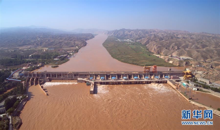 黃河青銅峽水利樞紐工程(9月1日無人機(jī)拍攝)。新華社記者劉詩平攝