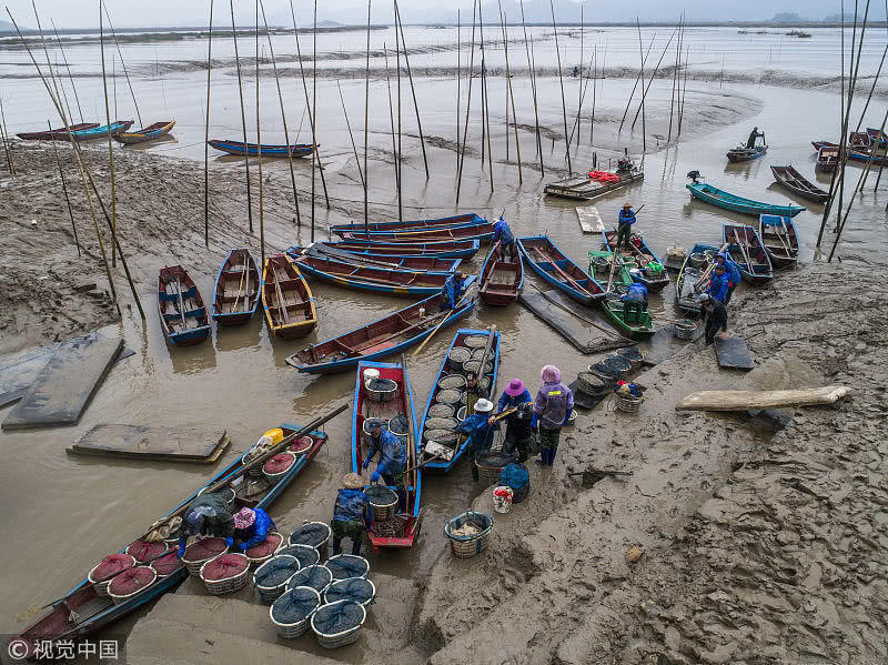 遼寧長(zhǎng)海漁民打撈牡蠣 場(chǎng)面壯觀!