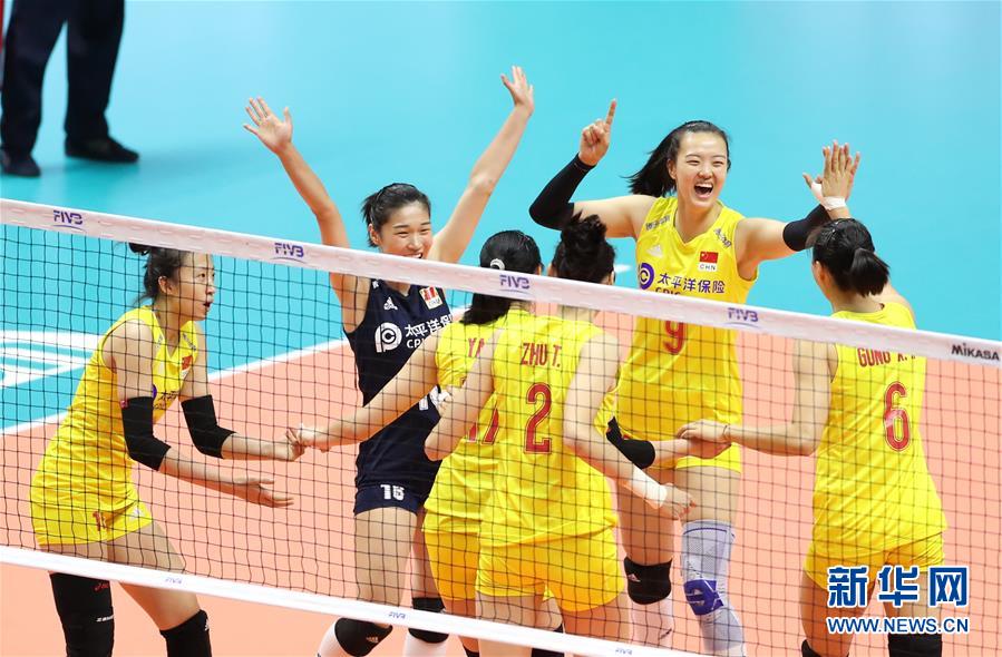 9月23日,中國(guó)隊(duì)球員在比賽中慶祝得分。當(dāng)日,在日本札幌舉行的2019年女排世界杯賽第二階段A組循環(huán)賽中,中國(guó)隊(duì)以3比0戰(zhàn)勝美國(guó)隊(duì)。新華社記者杜瀟逸攝