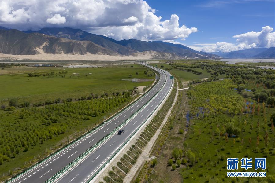 雅魯藏布江沿岸的公路(9月10日無(wú)人機(jī)拍攝)。 新華社記者 旦增尼瑪曲珠 攝