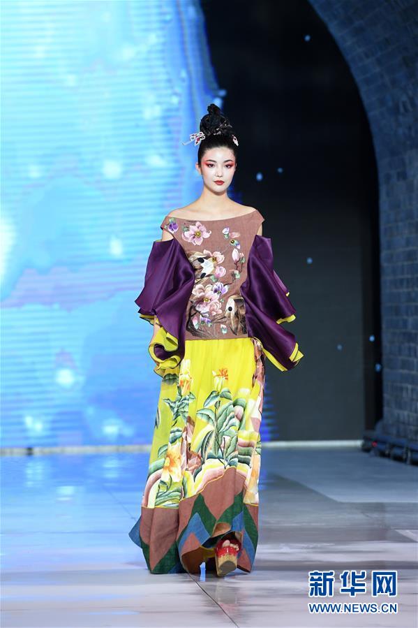 9月25日,模特在榮昌夏布·張義超非遺時尚大秀上展示時裝設(shè)計師張義超的時裝作品。