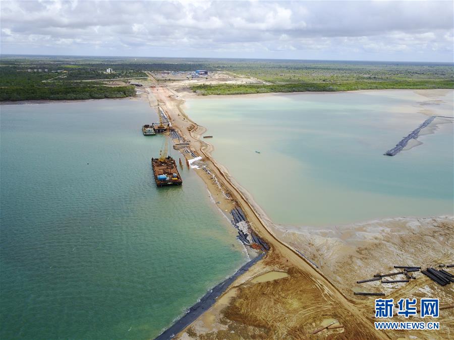 這是2017年5月10日在肯尼亞東北部曼達(dá)灣海域拍攝的拉穆港項(xiàng)目的引堤,引堤將大陸與人造陸地連在一起。2012年3月,肯尼亞聯(lián)合南蘇丹和埃塞俄比亞啟動了“拉穆港-南蘇丹-埃塞俄比亞交通走廊”項(xiàng)目。項(xiàng)目包括鐵路、公路和石油管線等諸多組成部分,總投資額約250億美元。同年,中國交建從17家通過資格預(yù)審的國際公司中脫穎而出,獲得拉穆港項(xiàng)目的承建權(quán)。新華社記者潘思危攝