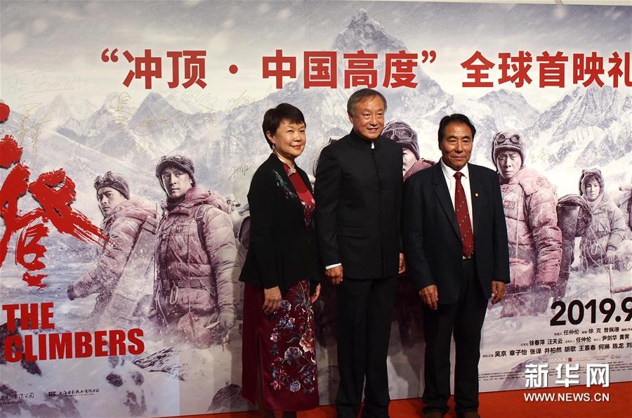 9月27日,原中國(guó)登山隊(duì)員桑珠(右一)和登山家夏伯渝(中)參加電影《攀登者》全球首映禮。新華社記者任瓏攝