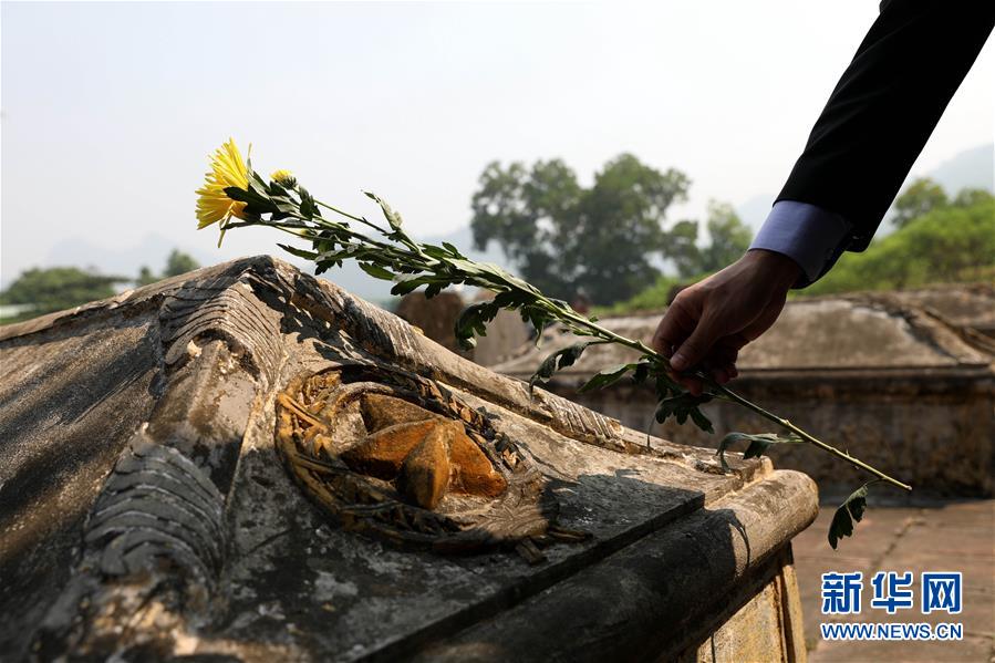 9月30日,在越南北部河南省,人們用鮮花祭奠中國援越烈士。 中國駐越南大使館館員、中國援越老戰(zhàn)士及其親屬、在越中資機(jī)構(gòu)和留學(xué)生代表等30日前往位于越南河南省的金榜烈士陵園,祭奠長眠于此的14名中國援越烈士。越中友協(xié)副主席阮榮光等越方代表也參加了祭掃活動。 新華社記者 王迪 攝